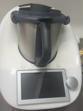 Robot de cocina Thermomix. - Color blanco. - Panel de control con pantalla digital y botones. - Dial selector de velocidad y temperatura. - usada pero en perfecto estado , regalo varona para hacer al vapor , la tapa se agrieto de meter al lavavajillas pero cumple su función