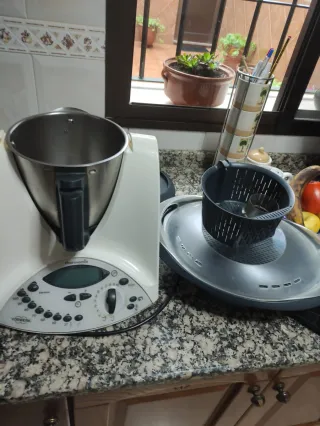 Vendo mi Thermomix TM31 Vorwerk, no se q le pasa a e pesado a dar fallo me pone error 32 y no se q Es tiene la cuchilla nueva si alguien sabe repararla - Modelo TM31 de Vorwerk. - Color blanco y gris. - Incluye accesorios como se ve en la imagen.