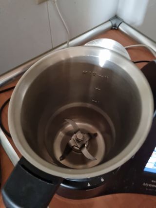 Recipiente de acero inoxidable para Thermomix TM6 o TM5, en buen estado. Incluye tapa. Ideal para cocinar al vapor, triturar, mezclar, etc. - Capacidad: [Insertar capacidad] - Material: Acero inoxidable - Incluye tapa, cuchillas, base, cubilete y cestillo. usado pero en muy buen estado posibilidad de mandarlo atraves de wallapop. revision del precio si lo vienes a buscar. zona guadalajara y corredor del henares.