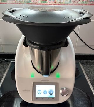 Robot de cocina Thermomix TM5 de Vorwerk. Su diseño blanco y elegante se adapta a cualquier cocina. En perfecto estado de funcionamiento - Tapa con asa y orificios de ventilación. - Pantalla táctil a color. - Botón giratorio para control de funciones.