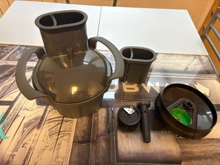 Se utilizó el día que se compró y ya...está nuevo. Se vende sin cajas. Accesorio cortador para Thermomix TM6. Incluye varias piezas para diferentes cortes. - Cuerpo principal del cortador. - Cuchilla. - Engranaje. - Recipiente. - Tapa.