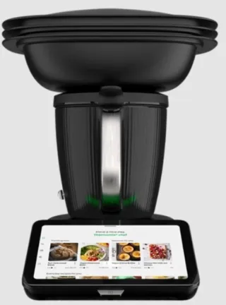 Robot de cocina Thermomix. - Diseño moderno y elegante. - Pantalla táctil intuitiva. - Botón giratorio para ajustes.