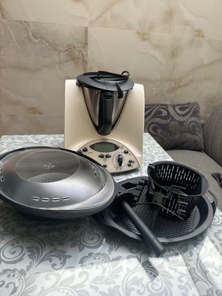Buenas vendo thermomix tm31, tiene un pequeño añarazo pero funciona correctamente,el cubilete es nuevo sin estrenar y las cuchillas tambien,dejo las dos cuchillas porque las otras estan bien para cocinar porque para picar le costaba. Lleva el libro de recetas y el de las instrucciones
