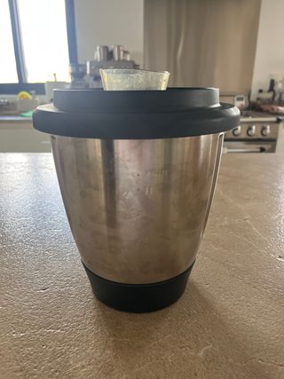 Vaso para Thermomix TM6. - Material: Acero inoxidable. - Tapa negra. - sin usar. en su embalaje original Incluye vaso, cuchillas, cestillo, tapa