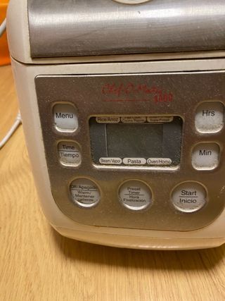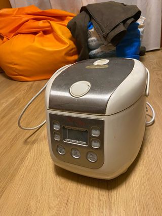 Robot de cocina multifunción SOGO con panel de control digital. Usado 4 veces. -11 opciones de cocción para Arroz, Hervir, Freír, Gachas, Recalentar, Pasta, Guisado, Esterilización, Vapor, Pasteles y Sopa -¡Incluye recetario con 25 recetas a color en español! - Panel de control con pantalla LCD. -Cocción de arroz: 1.8L / Otro tipo de cocción: 5L -Cuerpo de acero inoxidable -Olla interior de aluminio de 2mm desmontable y con capa antiadherente de DUPONT. -Pantalla LCD +Función de temporizador y ajuste de temperatura para cada opción de cocción -Se puede programar 24 horas -Detección automática de la cantidad colocada en recipiente