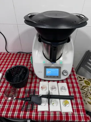 Lo vendo porque no le he dado mucho uso y es un mueble de cocina mas 😀. Esta en muy, muy buen estado, como nuevo y conserva la caja original. La bolsa/mochila para llevarlo en los viajes está en su caja, sin abrir. Incluyo como regalo la funda protectora para guardarlo. Programa de recetas gratis hasta el 20/03/2026. Bajo garancia hasta febrero 2027 (Plan Vive incluido) (ver fotos). Entrega con contracto de venta-compra y factura. ............ Thermomix®️ TM6 es el robot de cocina multifuncional con la más alta calidad e innovación del mercado. Que te permite ahorrar tiempo gracias a sus modos y a la cocina por niveles. Maxima precisión en su balanza, te permitirá pesar gramo a gramo y su sistema de calentamiento te permite alcanzar rangos de temperatura de 37º hasta su modo de alta temperatura. Su alta calidad es sinónimo de resultados perfectos, consigue la cremosidad en un puré, masas aireadas o salsas bien ligadas.
