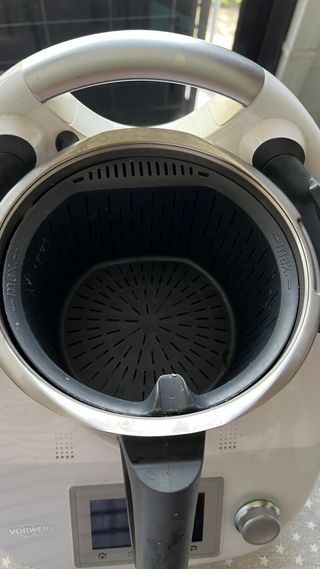 Recipiente para Thermomix TM6 en buen estado, está completo incluso con cestillo - Capacidad para cocinar grandes cantidades. - Material acero inoxidable. - Tapa con salida de vapor. Usado un par de veces