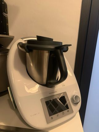 Robot de cocina Thermomix TM5 en color blanco y gris. Incluye varios accesorios. La he usado en contadas ocasiones. - Jarra de acero inoxidable. - Cesta. - Varoma. - Espátula. - Mariposa. - Libro recetas