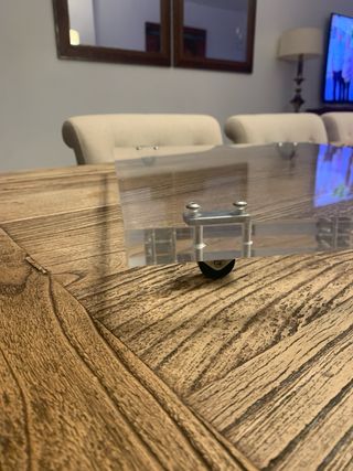 Plataforma de metacrilato de 2cm de grosor, transparente para Thermomix. Diseñada para facilitar el movimiento del robot de cocina por encima de vitroceramicas de 41cm de ancho o correr por encima de la encimera - Material: Metacrilato de alta calidad. - Diseño: Transparente moderno, discreta un punto de elegancia en tu cocina. - Soporte: 4 ruedas y 2 para liberar el copete - Tornilleria Inox Hecha a mano.