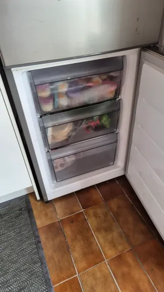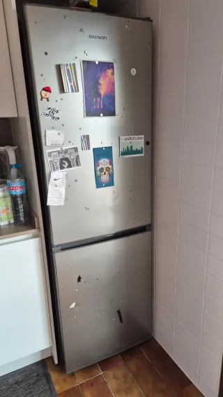 Regalo nevera de acero inoxidable de la marca Daewoo por mudanza. Saco todo y la limpio antes de entregarla. Cuadramos la fecha de recogida a partir del día 7 de enero! - Diseño moderno en acero inoxidable. - Puerta superior y cajón inferior.