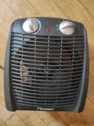 Calefactor portátil de la marca Bestron, ideal para calentar estancias pequeñas. - Diseño compacto y ligero. - Panel frontal con rejilla protectora. - Dos niveles de potencia. - Termostato regulable. - Indicador luminoso de funcionamiento. No se envia