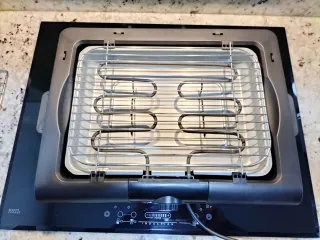 Parrilla eléctrica - Bandeja para recoger jugos - Control de temperatura. -Diferentes niveles de la parrilla -Facil limpieza -Patas para poder cocinar en la mesa Fue un regalo y solo la he usado dos vez.