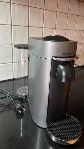 Cafetera Nespresso Vertuo Plus Deluxe en color gris y negro automática .Diseñada para preparar café de forma rápida y sencilla. - Depósito de agua transparente. - Bandeja recogegotas. - Acabado metálico.