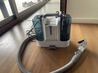 Aspiradora diseñada para la limpieza de tapicerías y sofás, ideal para eliminar líquidos. - Depósito de gran capacidad. - Manguera flexible para un fácil acceso. - Cable de alimentación. - Diseño compacto y portátil.