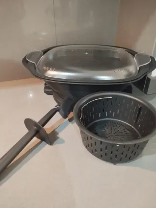 Vendo Thermomix TM6 de 2020 en perfecto estado. Aunque tiene 5 años, ha tenido menos de un año de uso real. Funciona perfectamente, solo tiene una pequeña marca estética en el lateral de la carcasa que no afecta en nada. Incluye: Vaso de acero inoxidable Espátula Cestillo Varoma completo Mariposa Cubre cuchillas Libro “Ideas sencillas” 5 vasos para postres (yogures, natillas, etc.)