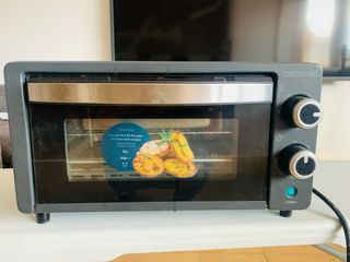 Horno eléctrico compacto de la marca Cecotec, ideal para tu cocina. - Capacidad de 10 litros. - Potencia de 1000 W. - Diseño moderno y funcional.