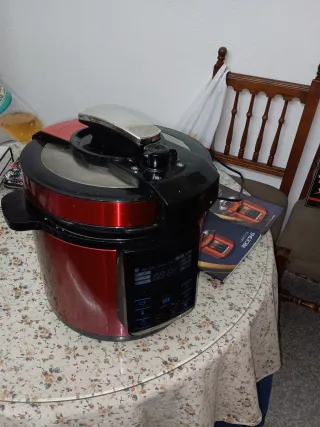 Olla eléctrica de cocina en color rojo, con panel digital. - Diseño moderno y compacto. - Panel de control con pantalla. - Tapa con asa metálica. Contiene su caja