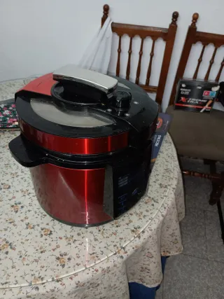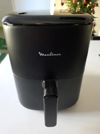 Moulinex Easy Fry Compact EZ1458, en muy buen estado y funcionando perfectamente. Usada 2 veces y siempre con recipiente apto. Ideal para cocinar rápido y más sano, sin apenas aceite. • 1300 W de potencia • Capacidad 3 L (perfecta para 1–3 personas) • Hasta 200 °C • 10 programas automáticos • Tecnología Extra-Crisp (crujiente sin aceite) • Temporizador • Panel táctil LCD • Color negro