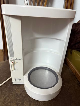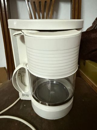 Cafetera de filtro de color blanco, con jarra de cristal. - Diseño moderno con líneas horizontales. - Asa lateral para un fácil manejo. - Base estable.