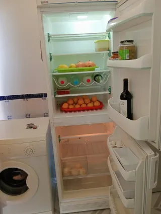 Frigorífico de dos puertas en color blanco. - Diseño moderno y funcional. - Tirador integrado en la puerta. - Base con rejilla de ventilación.