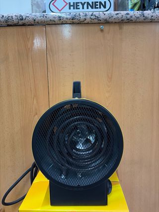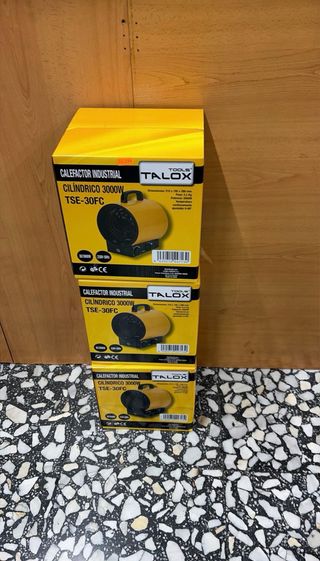 Calefactor industrial cilíndrico de la marca Talox. - Modelo: TSE-30FC - Potencia: 3000W - Voltaje: 220-240V ~ 50Hz - Color: Amarillo