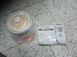 Yogurtera Ariete modelo Yogurella, compacta y fácil de usar. - Capacidad de 1L. - Incluye accesorio para yogur griego. - Diseño moderno en blanco y naranja. - Fabricada en Italia.