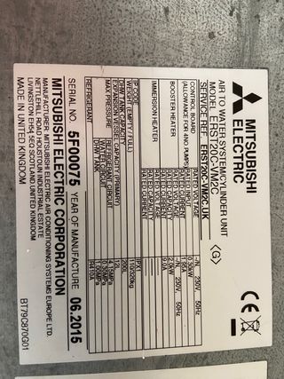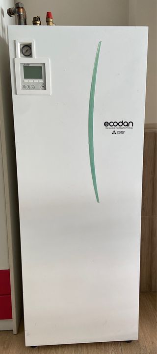 Unidad interior de aerotermia Mitsubishi Ecodan Modelo ERST20C-VM2C Año 2015 Funcionando al detalle. - Diseño moderno en color blanco. - Panel de control digital. - Indicador de presión.