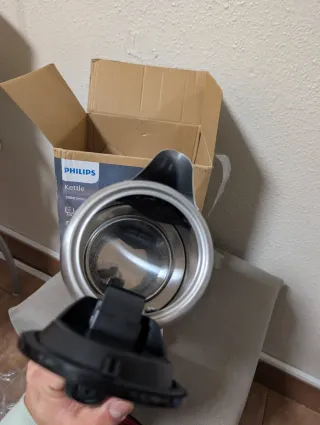 Hervidor de agua Philips de la serie 3000. - Diseño moderno en acero inoxidable. - Tapa con apertura amplia. - Base giratoria de 360 grados.