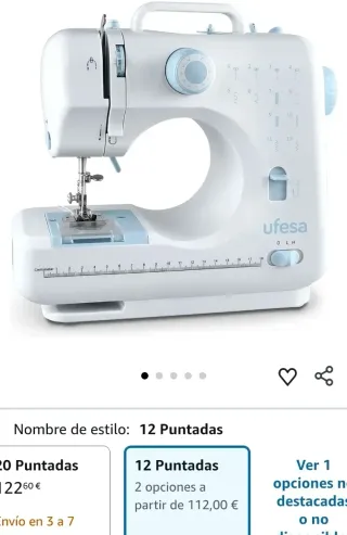 Ufesa SW1201 Facile Máquina de Coser con 12 Puntadas, 2 Velocidades, Luz de Costura, Pedal/Interruptor Manual, 6V de Potencia, Plástico, Blanco, Lila Marca Ufesa ColorBlanco/ Lila MaterialAcero inoxidable, Plástico Peso del producto5 Kilogramos Fuente de alimentaciónCable eléctrico Es eléctricoSí Rebobinado de hilo automático Longitud de la puntada regulable Costura hacia delante y hacia atrás 2 velocidades