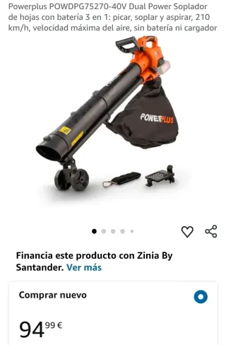 ¡Falta la correa y otra pieza pequeña, esto no afecta el funcionamiento! Powerplus POWDPG75270-40V Dual Power Soplador de hojas con batería 3 en 1: picar, soplar y aspirar, 210 km/h, velocidad máxima del aire, sin batería ni cargador Marca POWERPLUS Color Naranja Estilo Dispositivo de mano Dimensiones del producto 46l. x 19an. centímetros Acabado exteriorAcero inoxidable Tipo de mangoPerilla, Tirador Práctico de mover y controlar: el soplador de hojas de 40 V pesa solo 3,1 kg, por lo que es fácil de usar y controlar. Eficaz y potente: con una velocidad máxima de aire de 210 km/h y un volumen de aire de 9,5 m³/min, puede liberar ef
