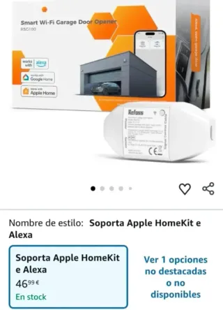 Refoss Abridor de Puertas de Garaje WiFi Inteligente para HomeKit, Apertura Puerta Garaje WiFi, Control Remoto y por Voz, Mando Puerta Garaje Universal Compatible con Alexa, Google Home Función especial No se requiere programación Color Compatible con Apple HomeKit Número máximo de dispositivos admitidos1 Dispositivos compatiblesPuerta de garaje Tecnología de conectividad Wifi
