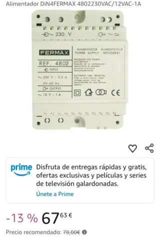 Fuente Alimentación Fermax 4802 230V/12V 1A