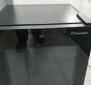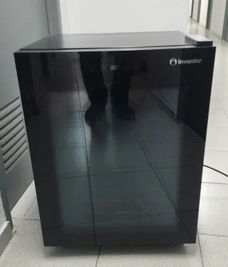 Nevera enfriador de la marca Inventor. - Diseño moderno en color negro. - Panel de control digital. - Perfecto para oficina - Tiene ruedas con freno