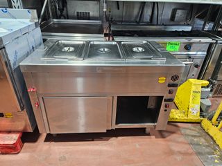 Mesa caliente en muy buen estado y poco uso, parte superior bañomaría para cubetas gastronorm, se puede cambiar a varios tamaños, parte inferior tipo armario con mantenedor caliente de doble puerta, con doble termostato de calor. Medidas exteriores 1600x700x850. IVA no incluido. Toda nuestra maquinaria tiene una garantía en repuestos de 1 año para maquinaria nueva y 3 meses en usada. Todo en maquinaria y mobiliario de hostelería, supermercados y alimentación. Estamos en Torrejón de la Calzada (Madrid) C/ Segunda Avenida 13, Pol. Ind. Las Avenidas, salida 28 de la carretera de Toledo A42. Envíos económicos a toda España.