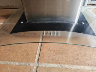 Campana extractora de la marca CIARRA con base de cristal y acero inoxidable. - Diseño moderno. - Acabado en acero inoxidable y cristal. - de 60.