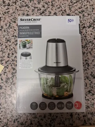 Picadora eléctrica SilverCrest con vaso mezclador. - Diseño moderno y compacto. - Vaso de cristal transparente.