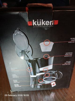 Cafetera de goteo Küken con capacidad para 4 a 6 tazas. Ideal para preparar café de forma rápida y sencilla. - Depósito de agua. - Jarra de cristal. - Placa calor. - Botón de encendido/apagado.