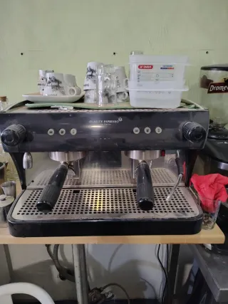Cafetera profesional de hostelería, ideal para negocios. - Diseño robusto y duradero. - Dos grupos para preparar café. - Bandeja de goteo extraíble.