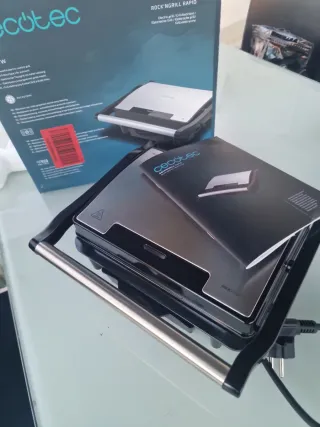 Plancha de contacto Cecotec Rock'nGrill Rapid. - Potencia de 1500W. - Placas antiadherentes. - Indicador luminoso de encendido y listo. - Recogecables.