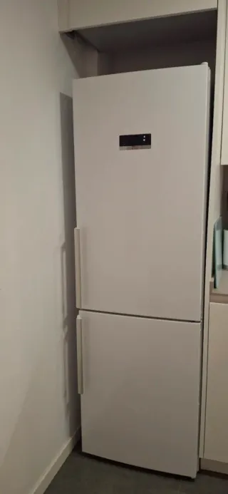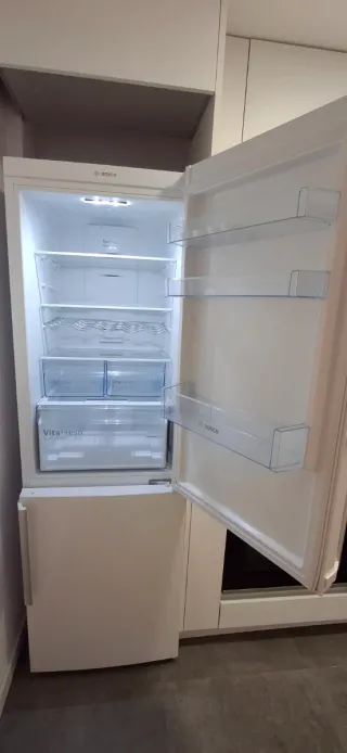 Frigorífico COMBI de la marca BOSCH con tecnología NoFrost. - Funciona perfecta, se puede ver sin compromiso. - Motivo de la venta: necesitamos un frigorífico que cubra el nuevo hueco de la nevera. - Diseño moderno en color blanco. - Dos puertas independientes para frigorífico y congelador. - Cuenta con tecnología No Frost, que evita la formación de escarcha. - Dispone de cajones VitaFresh para una mejor conservación de frutas, verduras, carnes y pescados. - Incorpora iluminación LED. - Tiene una clasificación de eficiencia energética C.