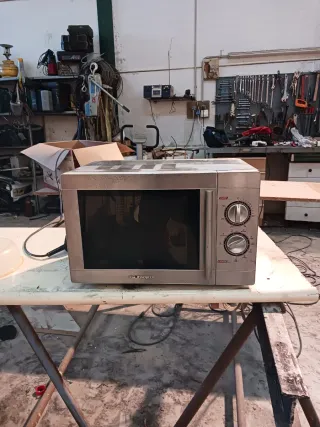 Microondas de sobremesa con una potencia de 800W. - Diseño moderno en color plateado. - Panel de control con diales. - Puerta con ventana. - Asa integrada para apertura.