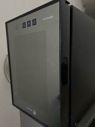 Nevera para vino Fagor con acabado Vintage. - Panel de control táctil con botones de temperatura. - Puerta de cristal. - Diseño moderno y elegante. * falla la pantalla que marca la temperatura