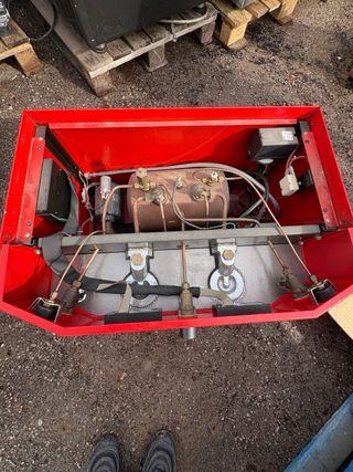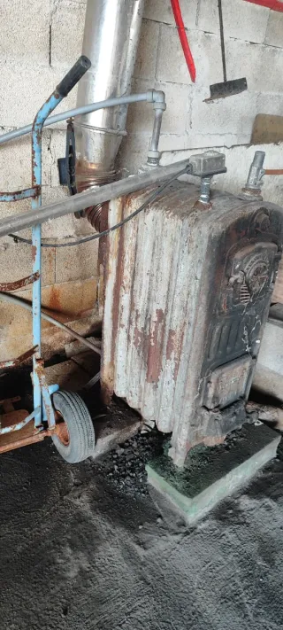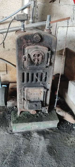 Caldera de estilo clásico, con un diseño robusto y detalles ornamentales. - Material: Hierro fundido. - Puerta de carga con detalles. - Chimenea clásica , funcional