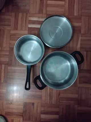 Set de olla y cazo Fagor de acero inoxidable. Apto para gas, vitroceramica, electricidad e induccion. Hago envíos. Agrupo para envíos económicos. - Olla con asas. - Cazo con mango.