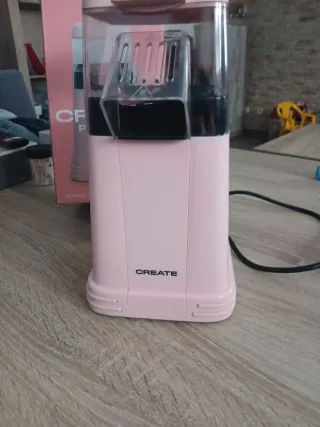 Máquina de palomitas de la marca CREATE en color rosa. - Diseño retro. - Compacta y fácil de usar.