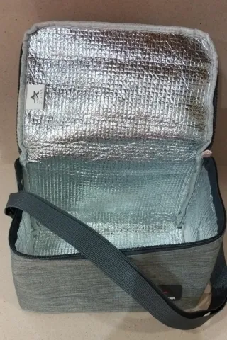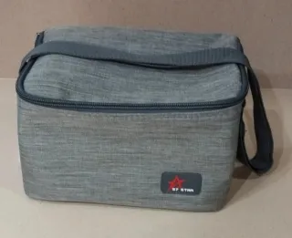 Nevera portátil S7 Star de tamaño pequeño, ideal para llevar tus alimentos y bebidas calientes y frias. - De tela, color gris jaspeado. - Asa de transporte. - Cierre con cremallera. - Medidas; Largo 23 cm Ancho 15 cm Altura 16 cm Nueva, sin usar Hago envios