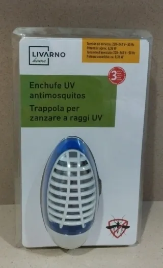 Enchufe UV antimosquitos de la marca Livarno Home. Ideal para mantener tu hogar libre de insectos. - Voltaje de servicio: 220-240 V. - Frecuencia: 50 Hz. - Potencia: aprox. 0,36 W. - Diseño compacto y moderno. NUEVO Hago envios