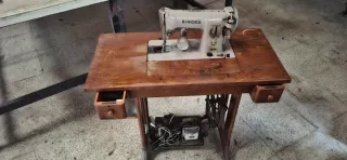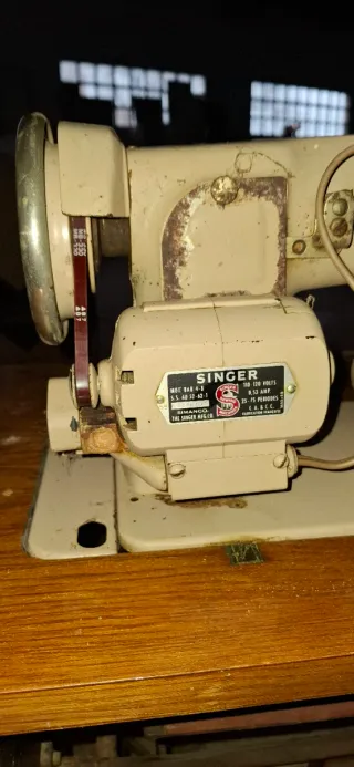 Máquina de coser Singer modelo 191B, muy antigua con su mesa de madera original. Mesa de madera con cajones. - Base metálica para la mesa. transformador de luz