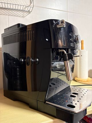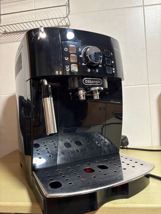 Cafetera automática De’Longhi Magnifica, en buen estado y totalmente funcional. ✔️ Molinillo integrado para café en grano ✔️ Regulador de intensidad y cantidad de café ✔️ Vaporizador para leche (capuccinos, lattes, etc.) ✔️ Fácil de usar y limpiar ✔️ Ideal para espresso recién molido en casa Se ha usado con cuidado. Presenta signos normales de uso (ver fotos), pero funciona perfectamente y hace muy buen café. La vendo por cambio a otro modelo.