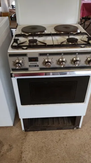 Cocina de gas con horno en buenas condiciones. - Encimera con 4 fogones. - Horno con puerta de cristal.